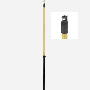 Pértigas de un solo tramo, realizadas con tubo de poliéster y fibra de vidrio de 32 mm de diámetro. Con obturaciones antihumedad en ambos extremos del mismo, guardamanos, empuñadura, contera, cabezal universal y gancho de maniobra.