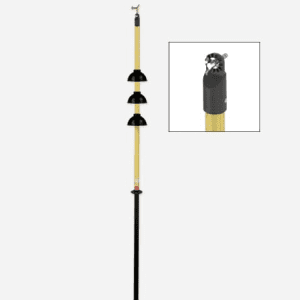 Pértigas de un solo tramo, realizadas con tubo de poliéster y fibra de vidrio de 32 mm de diámetro. Con obturaciones antihumedad en ambos extremos del mismo, 3 campanas deflectoras, guardamanos, empuñadura, contera, cabezal universal y gancho de maniobra.